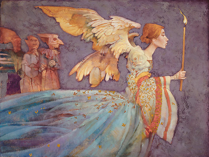 James Christensen’s life-long fascination with angels has presented us with some of the most beautiful paintings he has ever created including "Sleeper Lost in Dreams" and "Faith, Hope and Charity." In this image, the angel’s candle is a symbol of the guiding lights of virtue and faith. Angel will be released as an edition of only 50, so Christensen fans will have to act quickly to possess this angelic vision before it disappears!