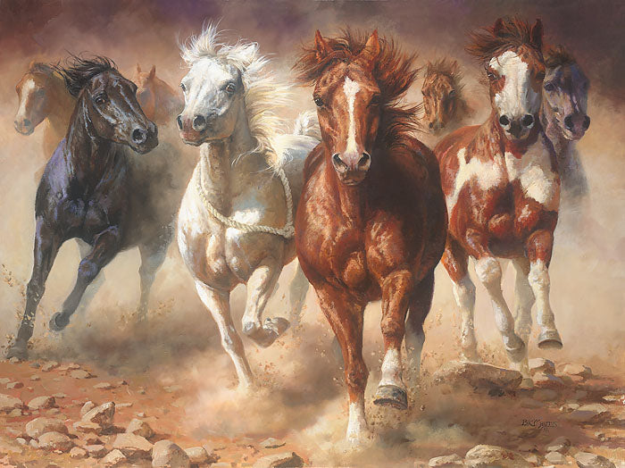 Bonnie Marris’ The Power of Freedom captures the primal lure the open range has upon horses: it is a place to unleash their love of speed and run for the joy of it. Experience the overwhelming power and grace of this wild herd with the massive 40" x 30" MasterWork™ Giclèe Canvas or the 24" x 18" Giclèe Canvas. Hang one of these stunning limited editions in your home and break free of the bounds of your ordinary wall décor.